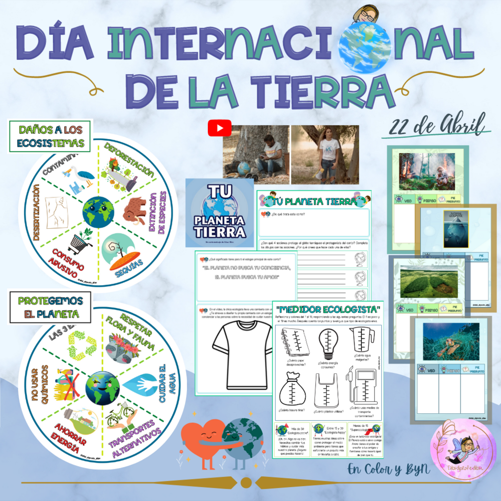 Este recurso incluye tanto en Color como en Blanco y Negro actividades de reflexión para realizar tras el visionado del corto: "Tú Planeta Tierra" protagonizado por César Ríos e India Martínez.
